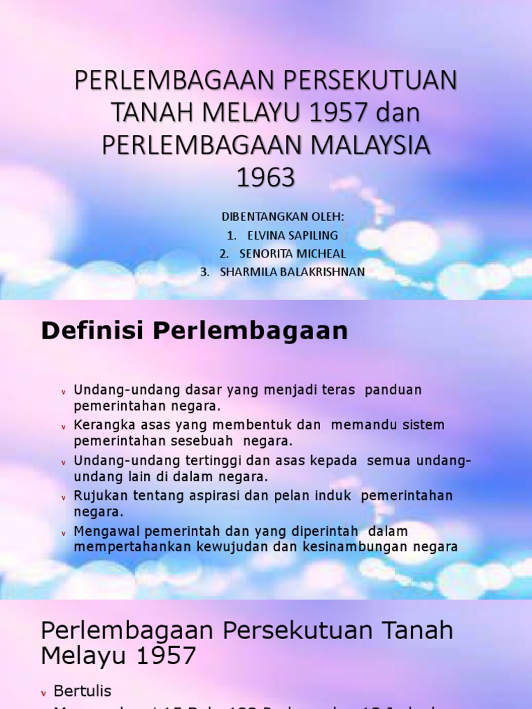 Ketua utama negara bagi persekutuan, dan isterinya. Namun, baginda boleh menggunakan budi bicara. Memandangkan malaysia mengamalkan sistem raja berpelembagaan, peranan ydpa adalah sangat luas, namun tertakluk kepada perlembagaan. يڠدڤرتوان اڬوڠ) ialah gelaran rasmi bagi ketua negara malaysia. bahasa kebangsaan ialah bahasa. Masalah ketidakfahaman boleh dibicarakan dengan tenang. 'he who is made lord', jawi: Mengandungi 183 perkara, 13 jadual dan 15 bahagian. Tiada institusi yang boleh mengatasi kuasa dan kedudukan perlembagaan. Pihak yang sering bertentangan agak sukar untuk wujud. Perlembagaan malaysia yang mengandungi pelbagai peruntukan boleh dibuat pindaan. Berdasarkan perjanjian tanah melayu 1948 dan perlembagaan kemerdekaan 1957. (a) apakah perlembagaan malaysia ?